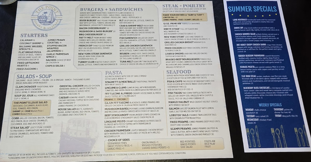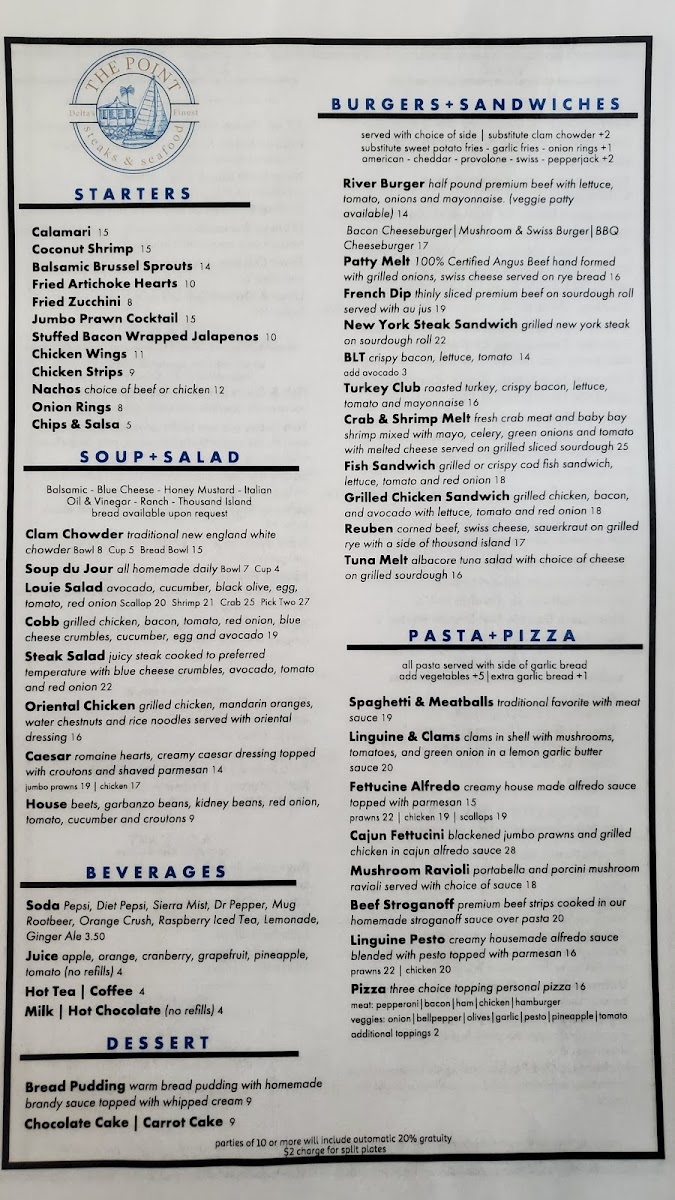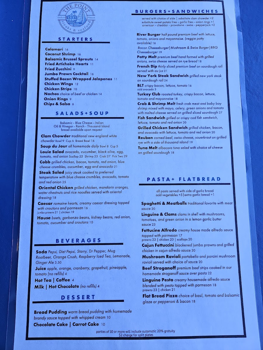 Customer reviews consistently highlight the attentive and friendly service at The Point. Robert Henry, a satisfied diner, raved about the efficient handling of his large group, praising both the quality of the food and the stunning riverfront view. Visitors like Rae Zachary and Laura Loriano echo this sentiment, celebrating the generous portions and the flavorful clam chowder that’s rich with clams and delightful depth. Even the little ones are catered to—Ron Crowe noted the excellence of the kids' menu, ensuring the whole family enjoys their culinary experience.