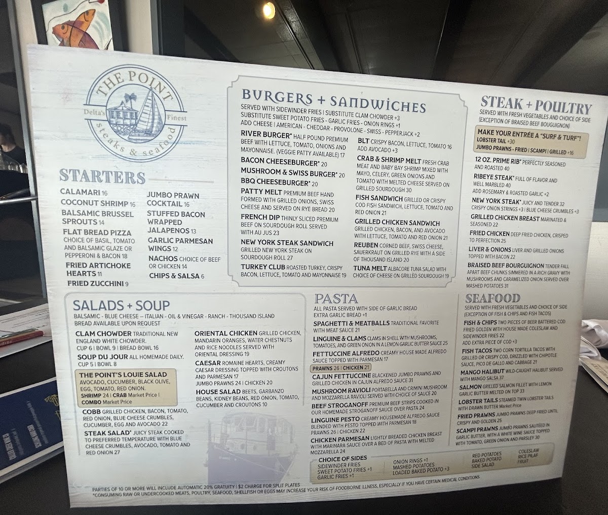 In summary, The Point Restaurant is not just a place to eat; it’s an experience that captivates your senses and nourishes your soul. Whether you’re indulging in delightful culinary offerings or basking in the stunning views of the delta, The Point promises to provide memories that last long after the last bite. Make your way to this hidden gem and add your story to the fabric of its rich history.